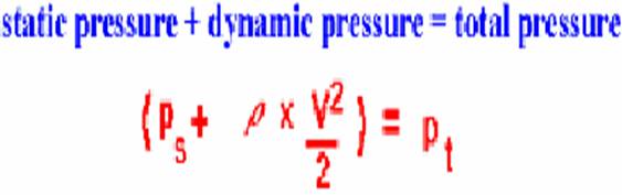 o At a particular point of flow, the total pressure is the sum of the static pressure and the dynamic pressure.
