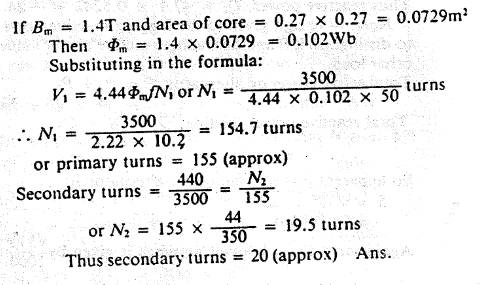 and the maximum flux density in the core is not to exceed 1.4T. Find the number