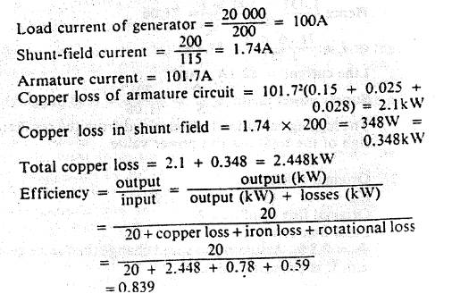 200V, long-shunt compound-wound generator has a full-load output of 20kW. The