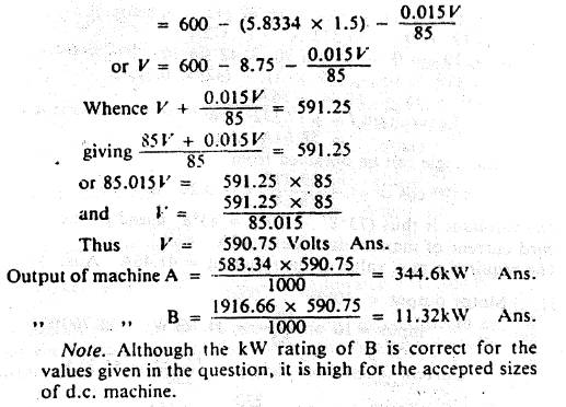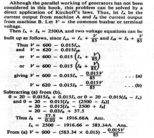 shunt generators work in parallel. Each has an armature resistance of 0.015Ω and a shunt-field resistance of 85Ω . Machine A is