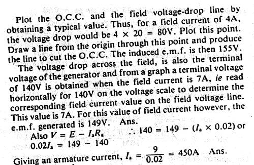 given by the figures below. The total resistance in the field circuit is 20Ω and the armature resistance is 0.02Ω. With the machine on load, estimate the e.m.f. generated and the armature current when the terminal