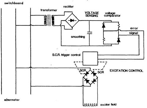 The correction is then amplified and through thyristor control is used to alter the alternator field