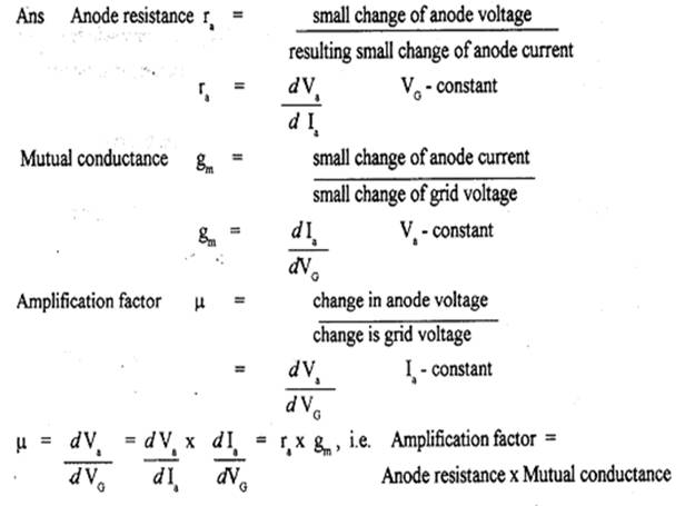 Derive the relationship between anode resistance, mutual conductance, and amplification factor for a diode.