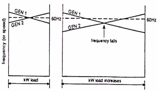 supplying all the load kW while GEN2 supplies zero kW. The governors of both