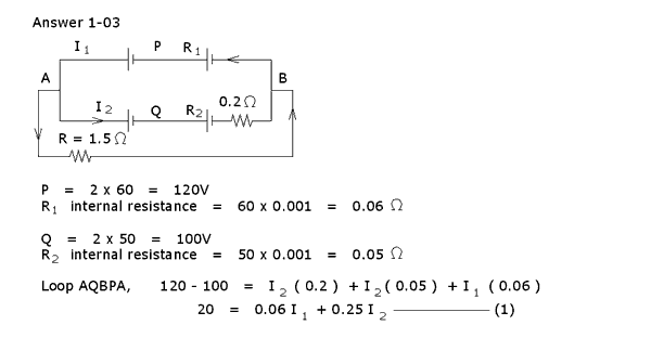 other branch. The battery has 50 cells, each of 2V e.m.f,
