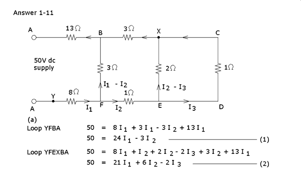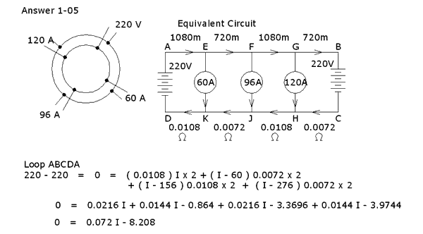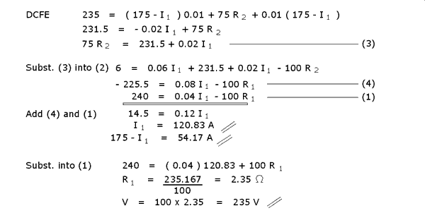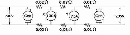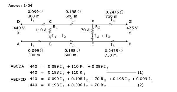 at end X and at 425V at end Y, the distance XY being 1650m. Two loads of 110A