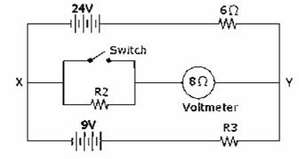 The voltmeter of internal resistance 8Ω, shown in the figure, reads 6V with