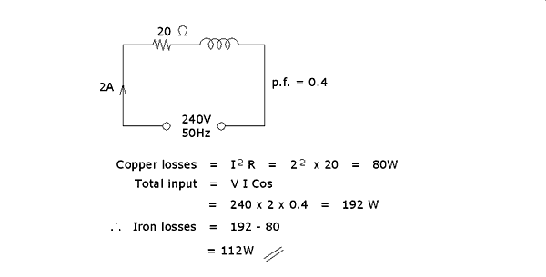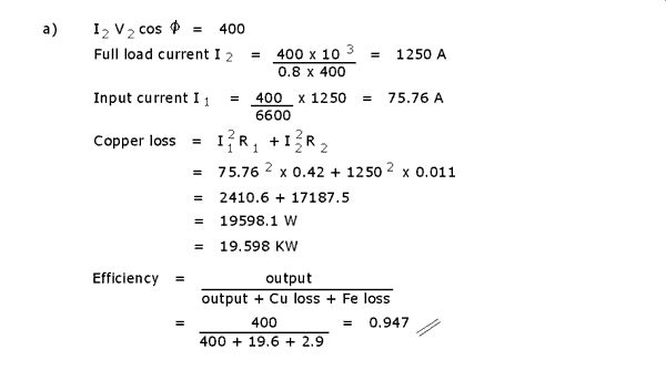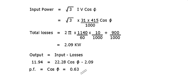 losses are 900 watts, estimate the efficiency and power factor of the machine.