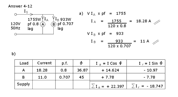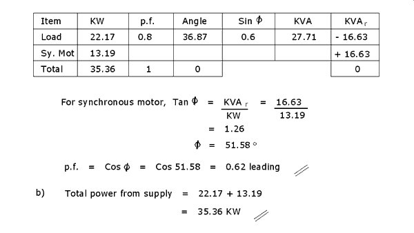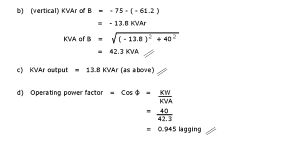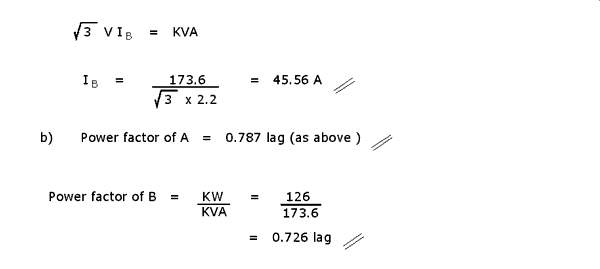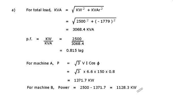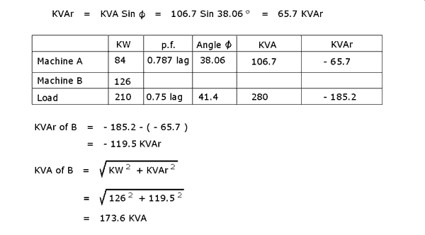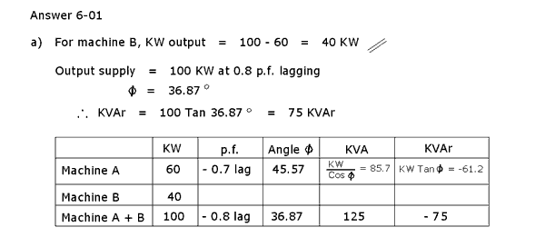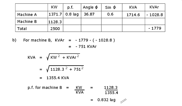 lagging. Machine A supplies 60 KW at 0,7 p.f. lagging. Calculate for machine B: