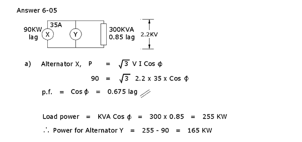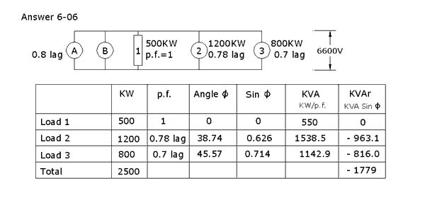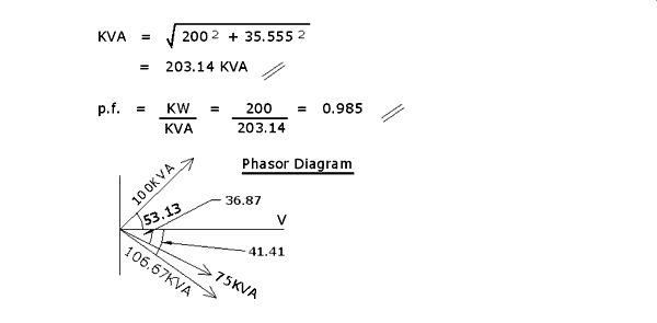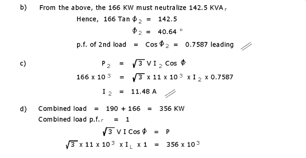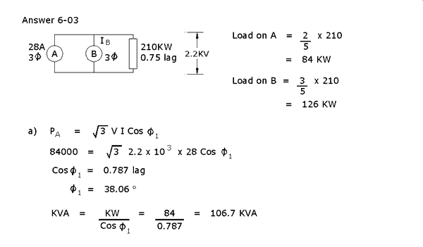 share a bad of 210 KW, at power factor 0.75 lagging, In the ratio 2:3, The line
