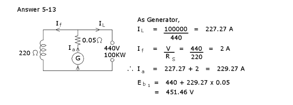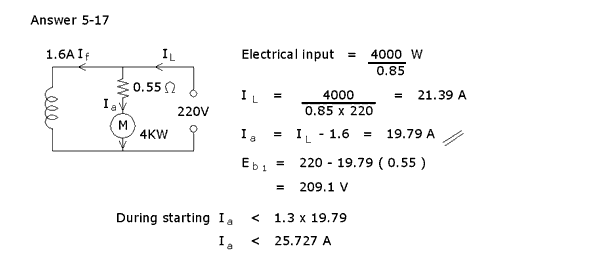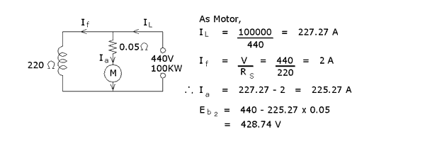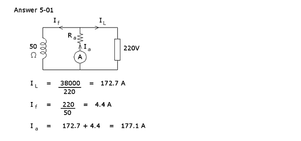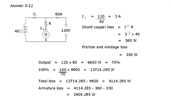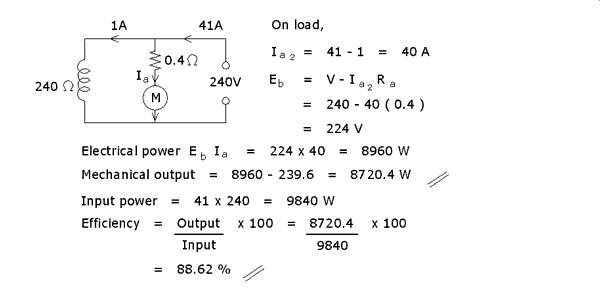 A4KW, 220V d,c> shunt motor has a full-load efficiency of $5