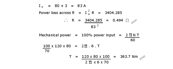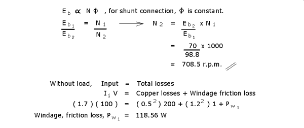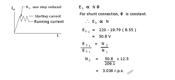 percent and a full-load speed of 12,5 rev per second. The shunt field current Is 1.6A.