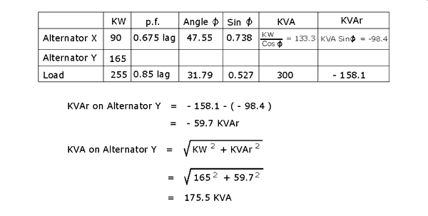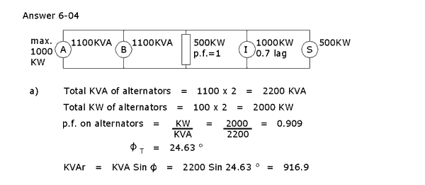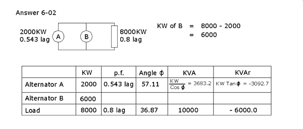 Two alternators, A and 6, connected In parallel, supply 100 KW at 0.8 p.f.