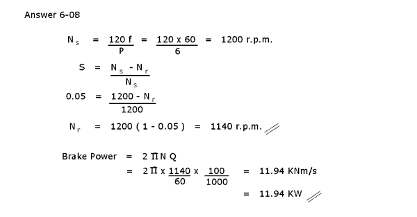 A 6-pole, three-phase, 415 V, 60 Hz, Induction