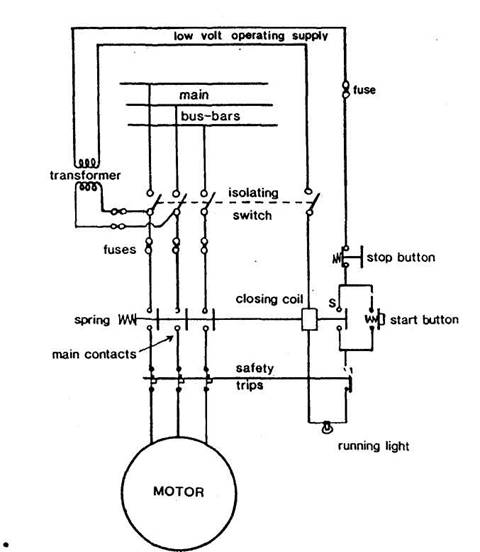 a circuit diagram of a push button DOL contactor starter for 3phase incorporating