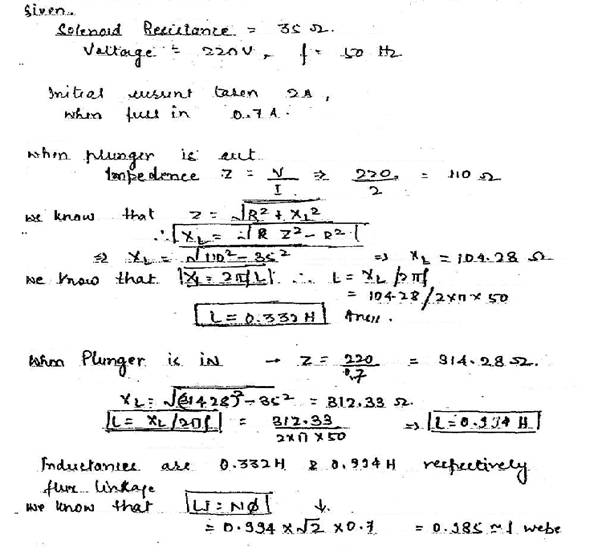 220 volt 50Hz AC supply the current taken at first is 2A, when plunger is drawn