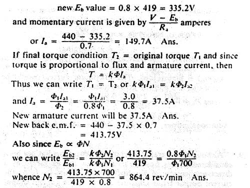 rev/min. The armature resistance is 0.70. If the flux is suddenly reduced 20 per