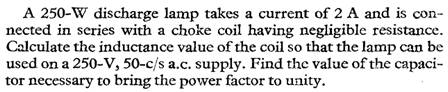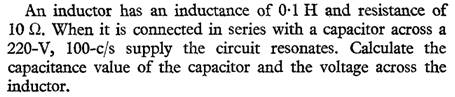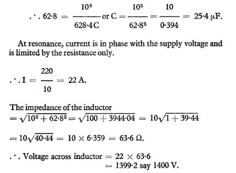 capacitance 312.8μF, and a branch B of negligible resistance and inductive