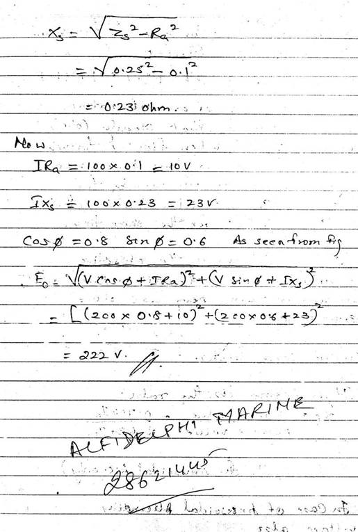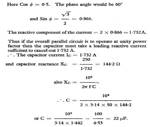 reactance of 1212. Derive graphically, the total current and its phase angle,