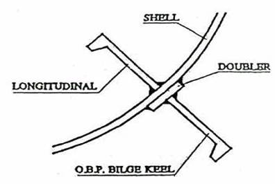 plating (such as merchant ships) the bilge keel is made up of a flat bar doubler welded directly to the shell and an offset bulb