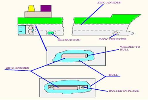 protection of external areas of the ship. Zinc is allowed corrode in preference