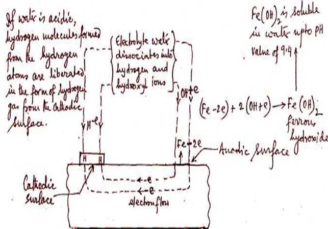 in the water depending on the pH valve, hence the metal is corroded.
