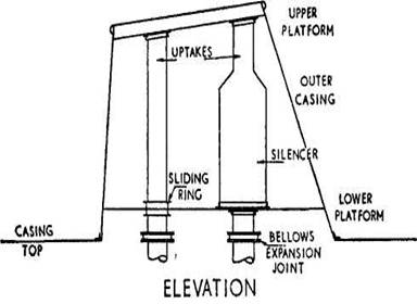 outer casing protecting the uptakes. The outer funnel is constructed of steel